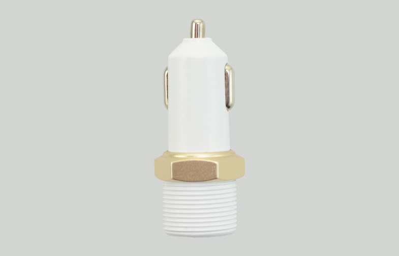 Χρυσό δαχτυλίδι μετάλλων με τη βίδα που στεγάζει το διπλό φορτιστή αυτοκινήτων usb